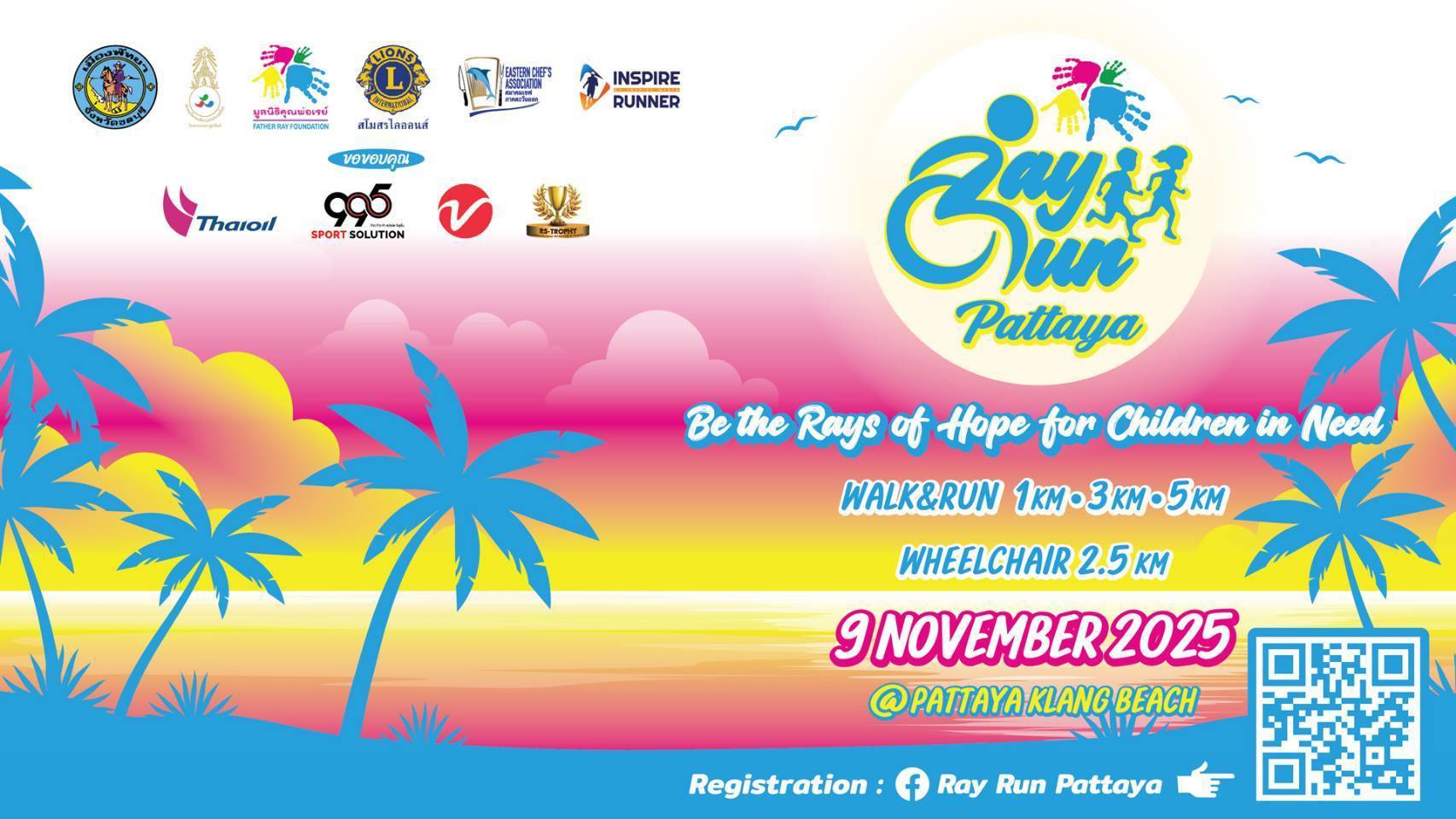 Father Ray Foundation would like to invite runners and the general public to be a part of the shining ray of hope for children in need on Sunday, November 9th, 2025 at the Pattaya beach. We are hosting our first charity beach and wheelchair run, which all proceed and donation will be contributed toward Father Ray Foundation grand purpose of providing care and educational supports to disadvantaged children and students with disability. Simultaneously, the charity run aims to champion the inspiration while encourage equal opportunity for disabled persons.